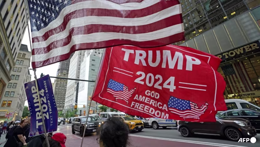 Second insert: Supporters of former US president and Republican presidential candidate Donald Trump gather outside Trump Tower after he was convicted in his criminal trial in New York City, on May 30, 2024. Photo: AFP/Timothy A. Clary and published by CNA